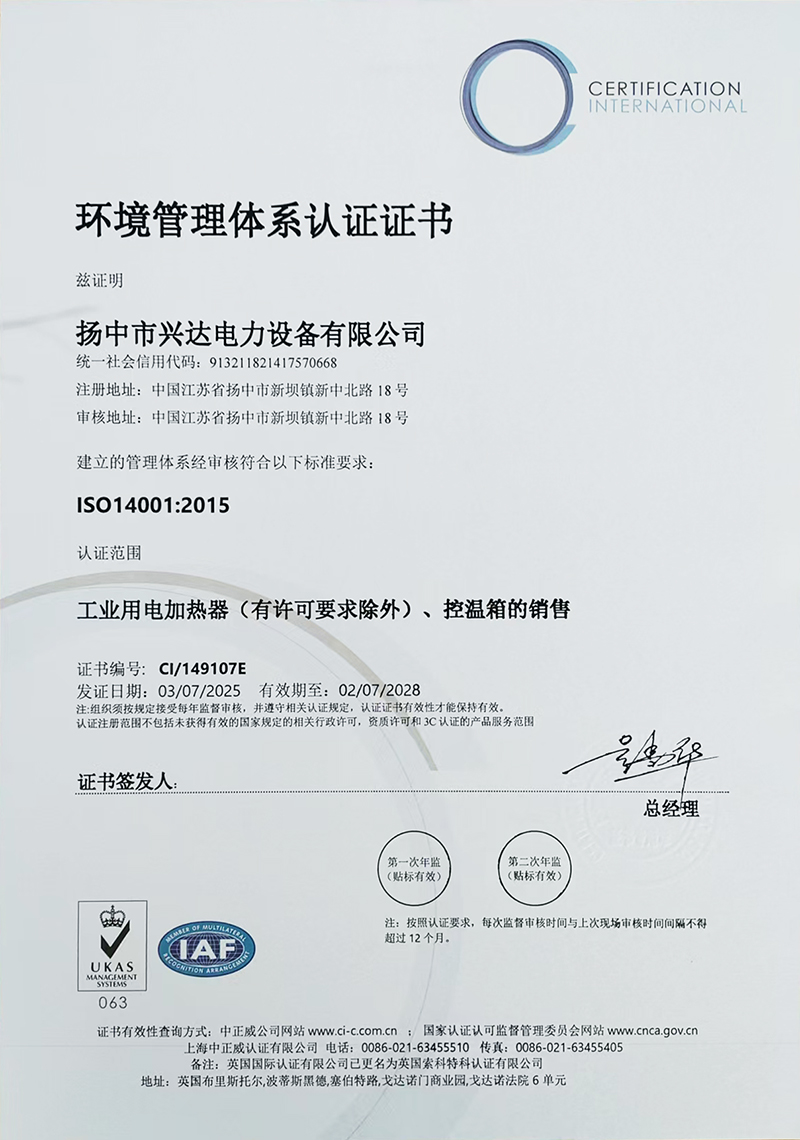 环境管理体系认证证书